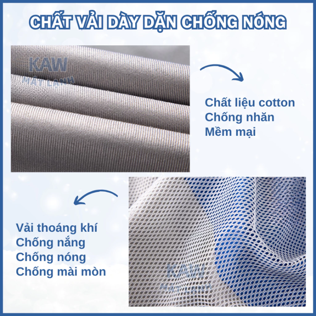 • Vải cao cấp chống tia UV, thoáng khí, không bí bách.