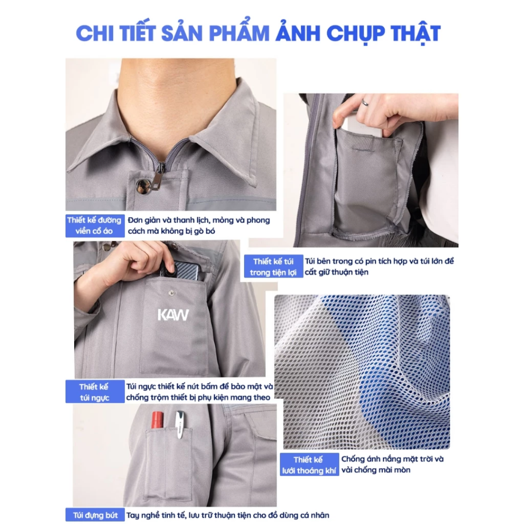 Áo điều hòa quạt gió KAW là giải pháp làm mát thông minh dành cho người lao động ngoài trời, kỹ sư công trình, công nhân nhà xưởng và người thường xuyên hoạt động trong môi trường nhiệt độ cao. Sản phẩm được tích hợp hệ thống quạt gió kép kết hợp pin dung lượng lớn 35.000mAh giúp lưu thông không khí liên tục, mang lại cảm giác mát mẻ suốt nhiều giờ liền.