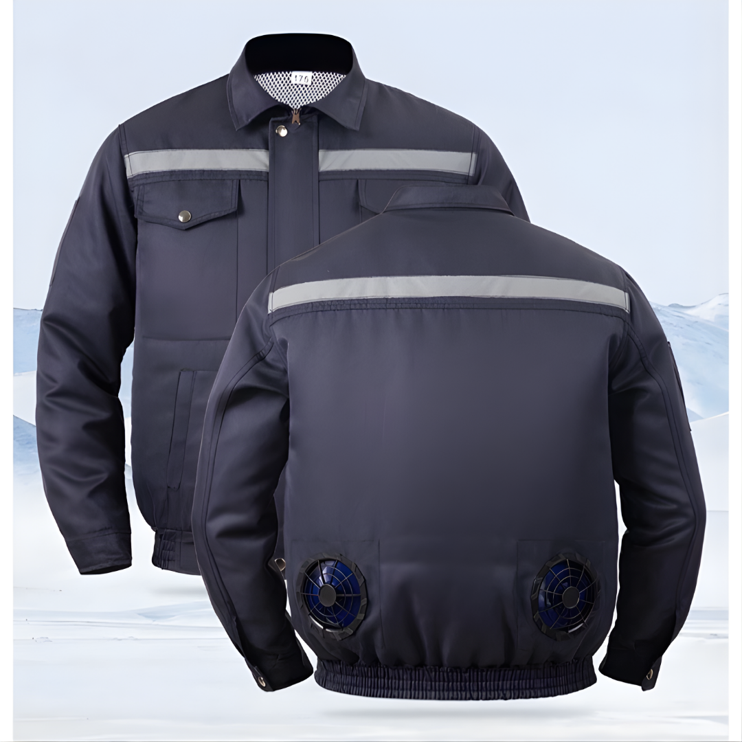 Áo hoạt động dựa trên cơ chế lưu thông không khí bằng hệ thống quạt gió, giúp giảm nhiệt nhanh chóng, tạo cảm giác dễ chịu, nâng cao hiệu suất làm việc trong điều kiện nắng nóng kéo dài.