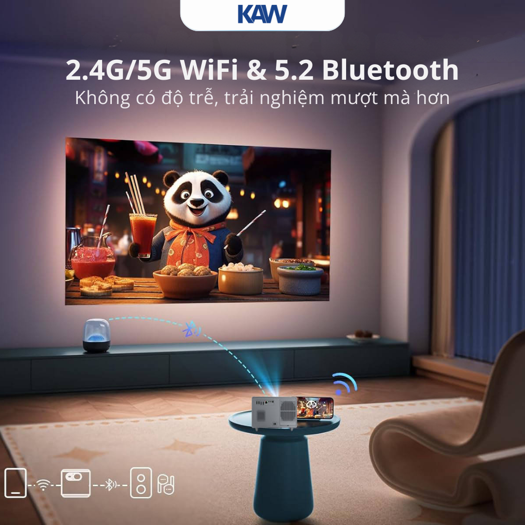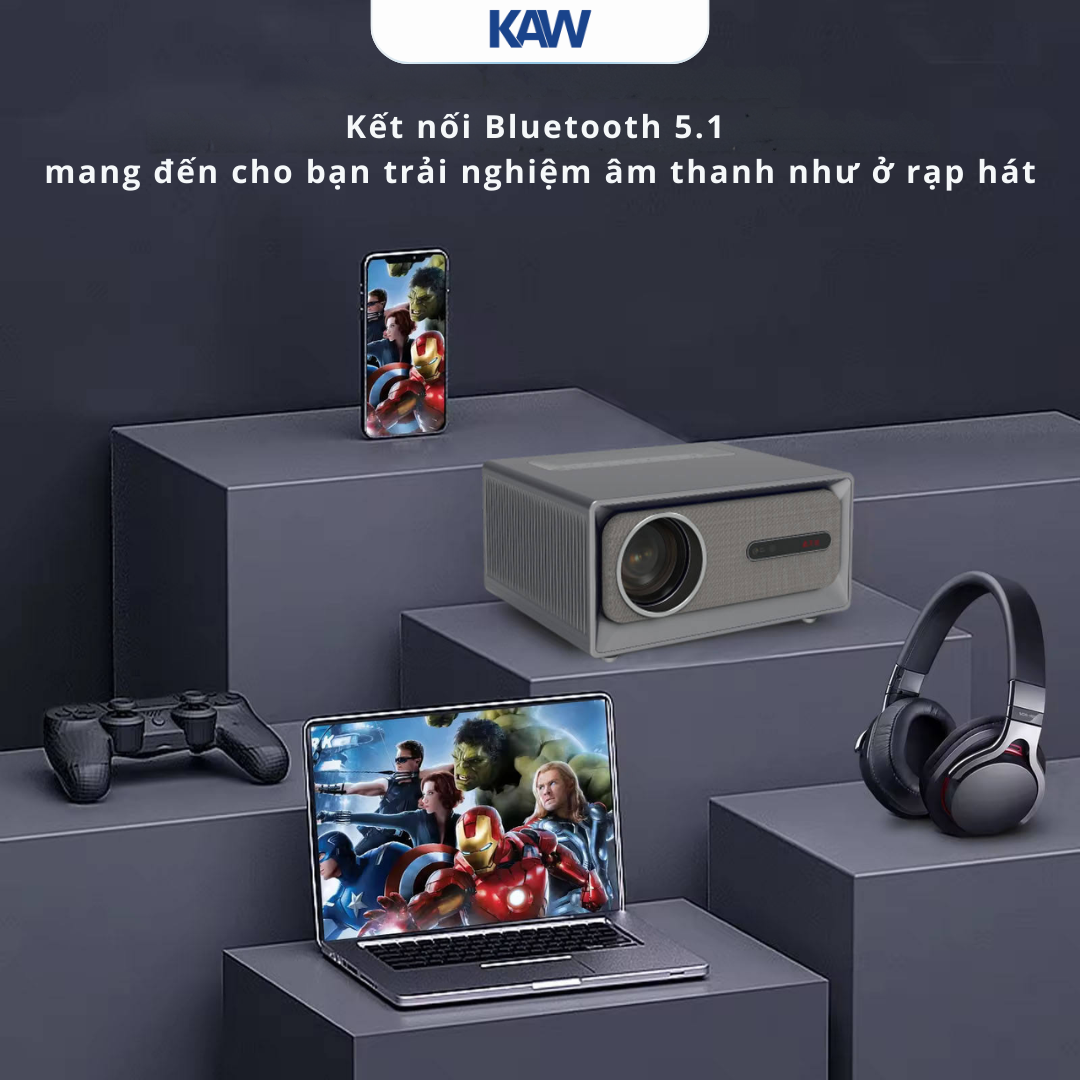 Máy Chiếu KAW HY6W – Rạp Phim Mini 1080P, Android 9, 3D, Chiếu 42–180 Inch