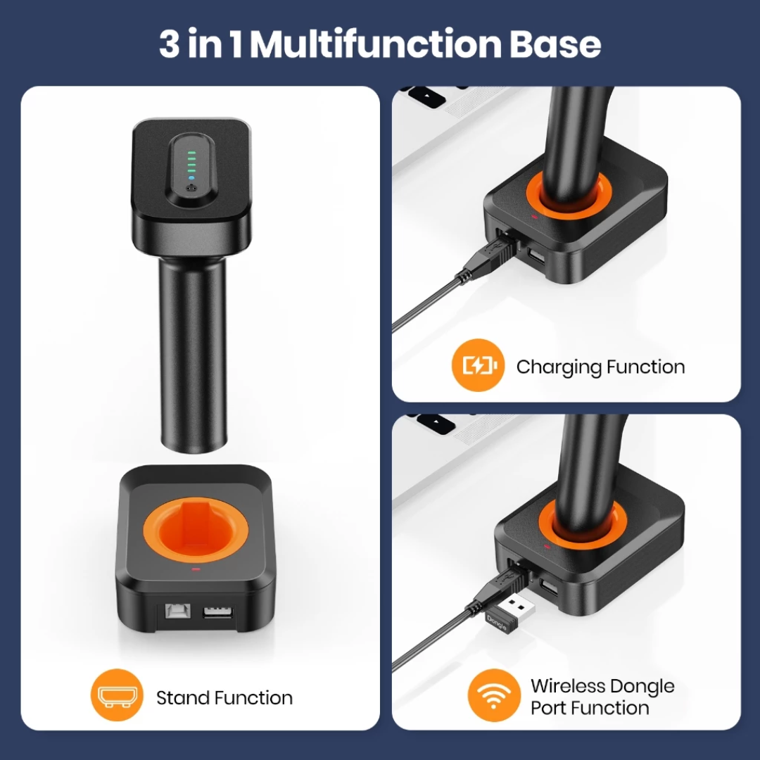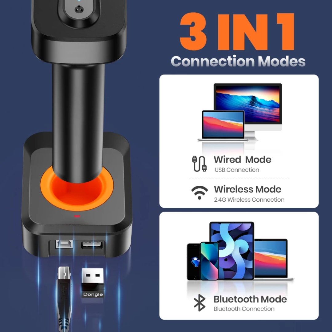 Máy Quét Mã Vạch 3 Trong 1 KAW 145A – Scanner Barcode 2D Bluetooth, Wireless 2.4G & USB, Đọc QR Code Trên Màn Hình Điện Thoại