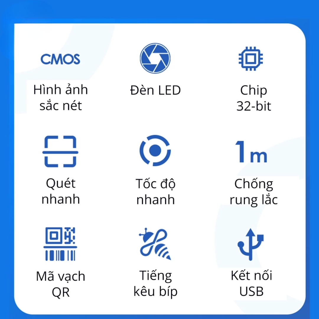 Lưu ý: Giữ bề mặt quét sạch và tránh che khuất tia quét để đảm bảo hiệu suất.