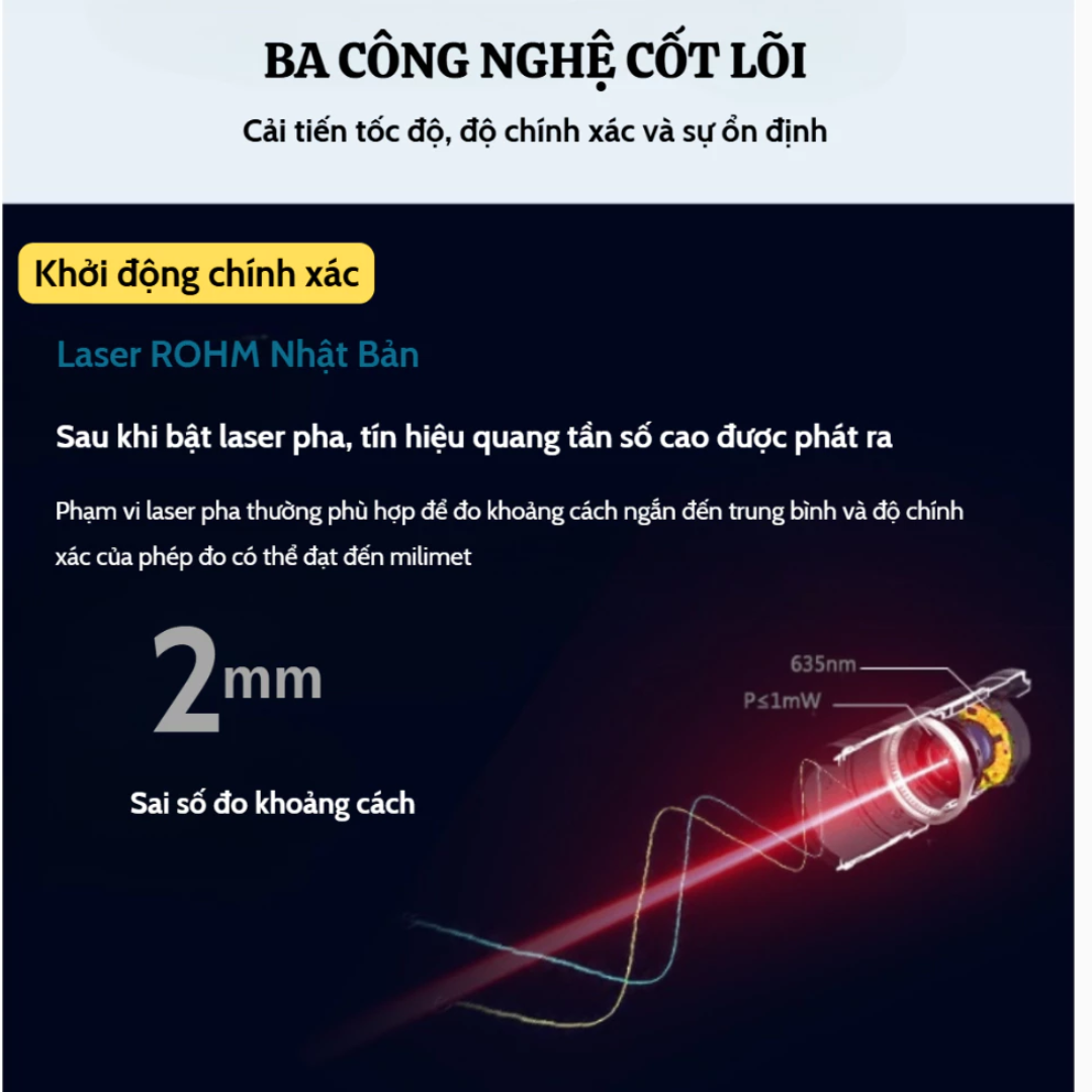 Khoảng cách 70m tương đương với chiều dài của 2-3 căn nhà phố gộp lại. Điều này cực kỳ hữu ích khi đo đạc sân vườn, nhà xưởng, kho bãi hoặc các sảnh khách sạn lớn mà không cần phải di chuyển máy nhiều lần.