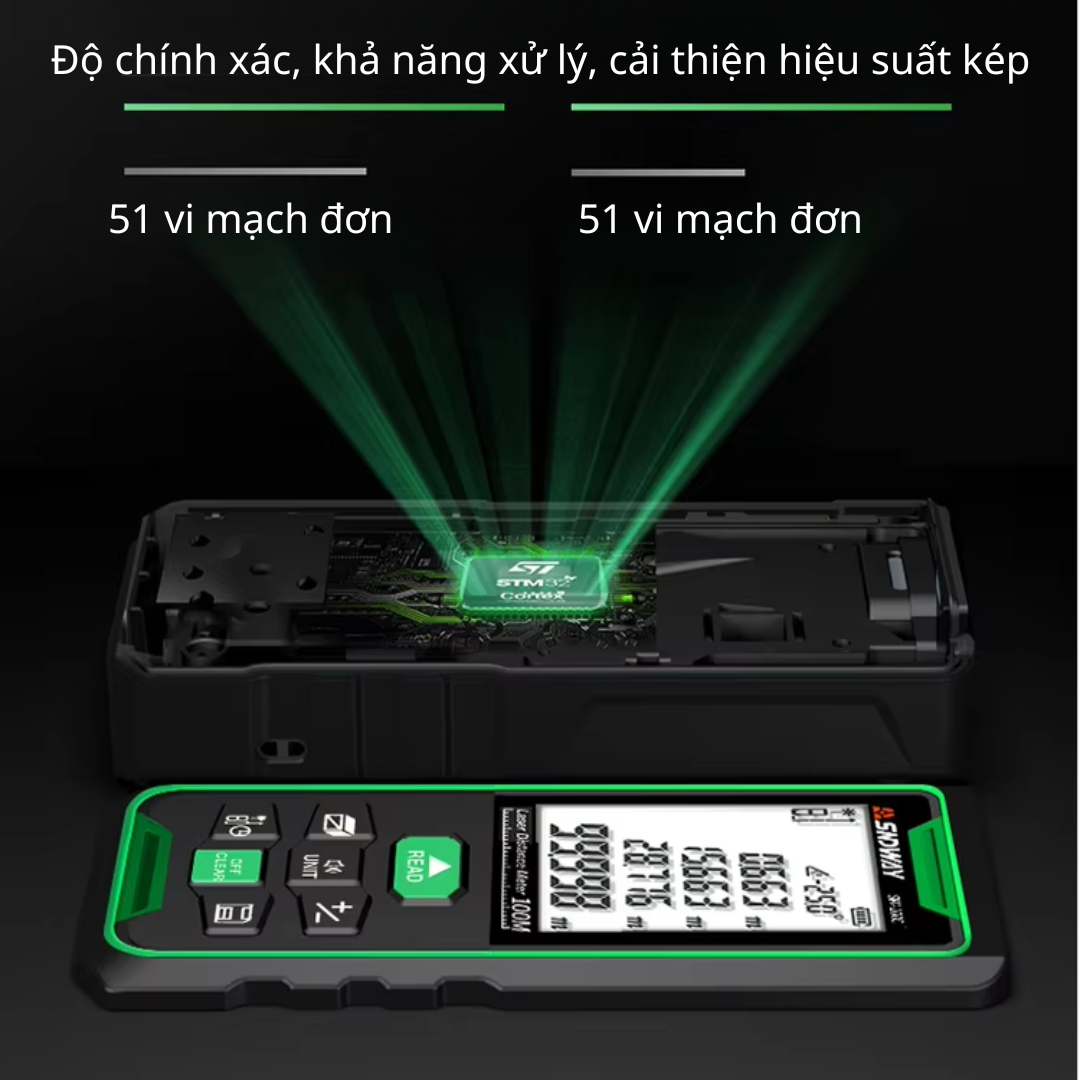 Máy đo khoảng cách SNDWAY SW-70G là sự kết hợp hoàn hảo giữa hiệu năng và giá thành. Nếu bạn đang tìm kiếm một thiết bị đo đạc đáng tin cậy, đặc biệt là ưu tiên khả năng quan sát tia laser dưới ánh nắng mặt trời, thì phiên bản tia xanh (Green Laser) này là lựa chọn không thể bỏ qua. Nó giúp rút ngắn thời gian làm việc, tăng độ chuyên nghiệp và đảm bảo kết quả đo luôn chính xác tuyệt đối.